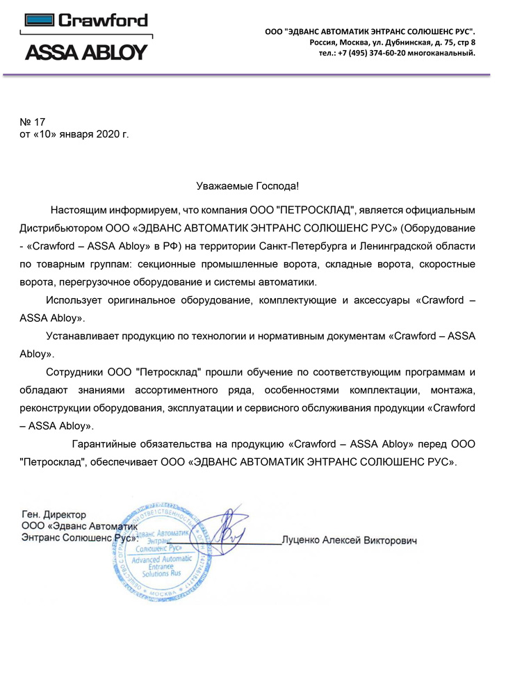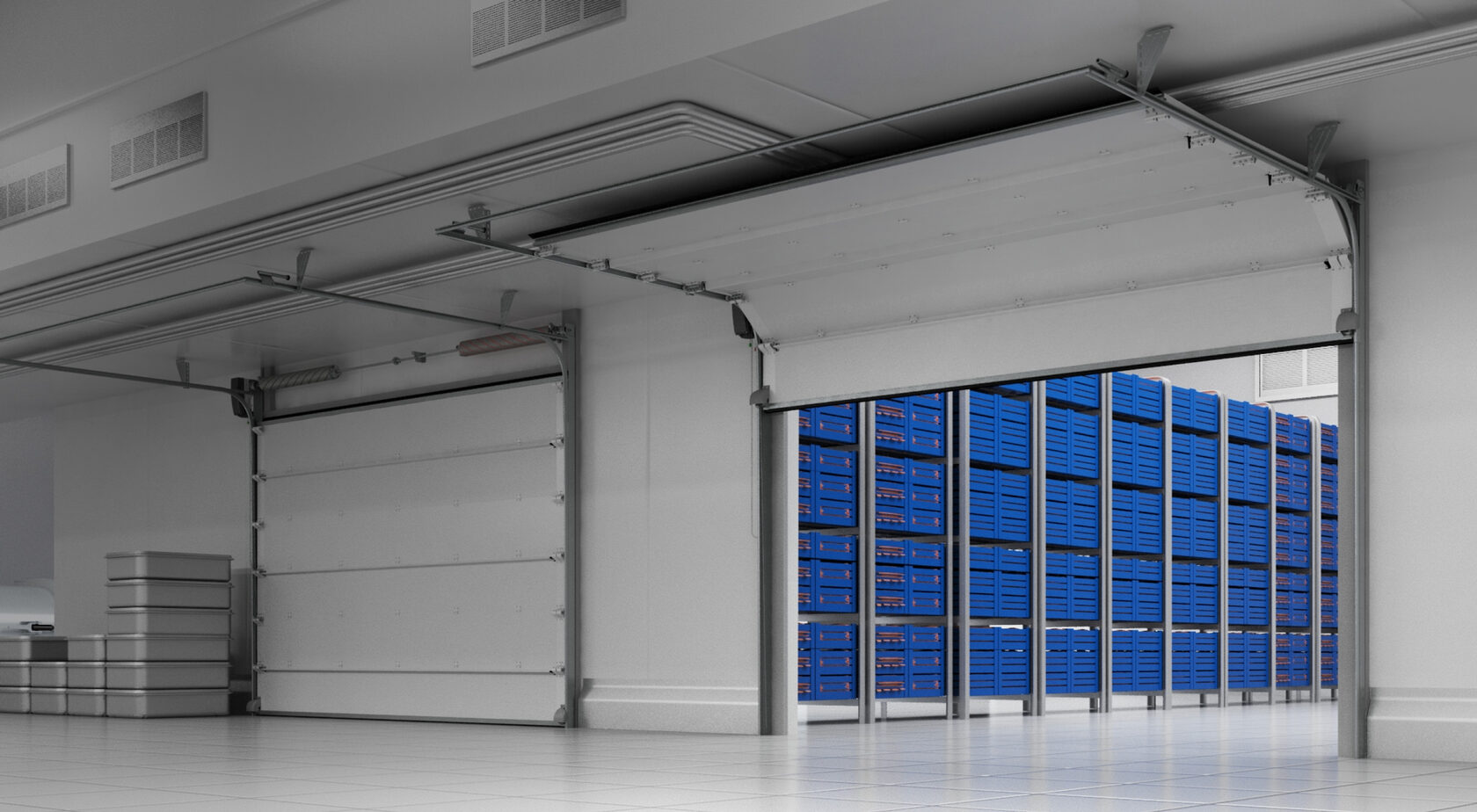 Поставка и установка 17-ти подъёмно-секционных панорамных ворот Crawford (Швеция) для станции технического обслуживания грузовых ТС.
