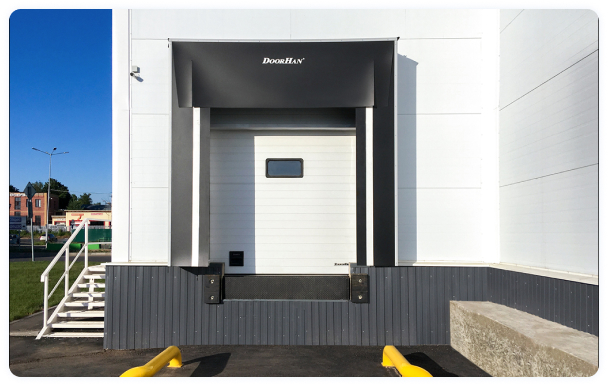 Монтаж перегрузочных мостов Crawford 6020T, герметизаторов Crawford 6060S и подъемно-секционных ворот Crawford 1042
