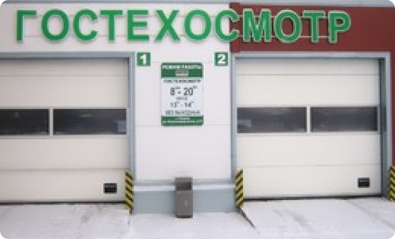 Оснащение станции гостехосмотра воротами Crawford 542 с панорамным остеклением.